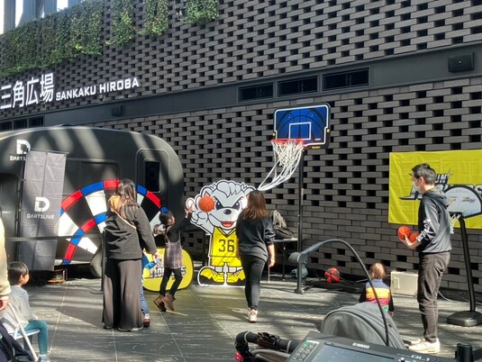 加えてステージでは著名なアスリートによるトークショーや、プロダーツ選手による実技披露、プロバスケボールチームのライブビューイングを行うなど、子供たちにプロの世界の凄さや技術を体感してもらうプログラムも実施しました。またイベントのメイン来場者層である小さなお子様やお連れの親御様が休憩しながら長く遊べるように、