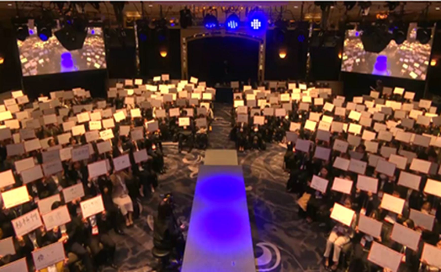 会場レイアウトとおなじく好評だったのが、SOMPOのパーパスを伝えるオープニングムービーです。グループ各社から集めた素材が、編集によってあれほどクオリティーの高い映像になるとは驚きでした。プロにしかできない映像の作り込みが素晴らしく、ぐっと胸に刺さるようなムービーに仕上がっていました。
